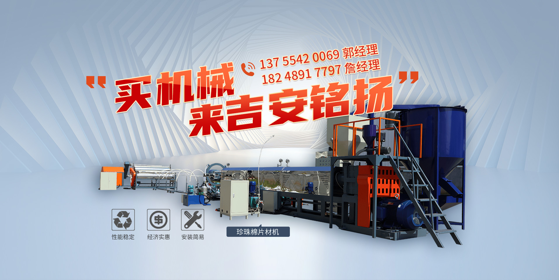 吉安銘揚機械有限公司成立于2019年,總經理有著二十多年從業經驗,是一家專注于珍珠棉機械設備研發(fā)、開發(fā)、生產及銷售的現代高科技企業,主要產品有:珍珠棉發(fā)泡機、覆膜機、珍珠棉電復合機、珍珠棉造粒機等數十種產品,應用于包裝、建筑、材料等行業。總部及研發(fā)基地設立于風景秀麗的紅色革命根據地吉安。